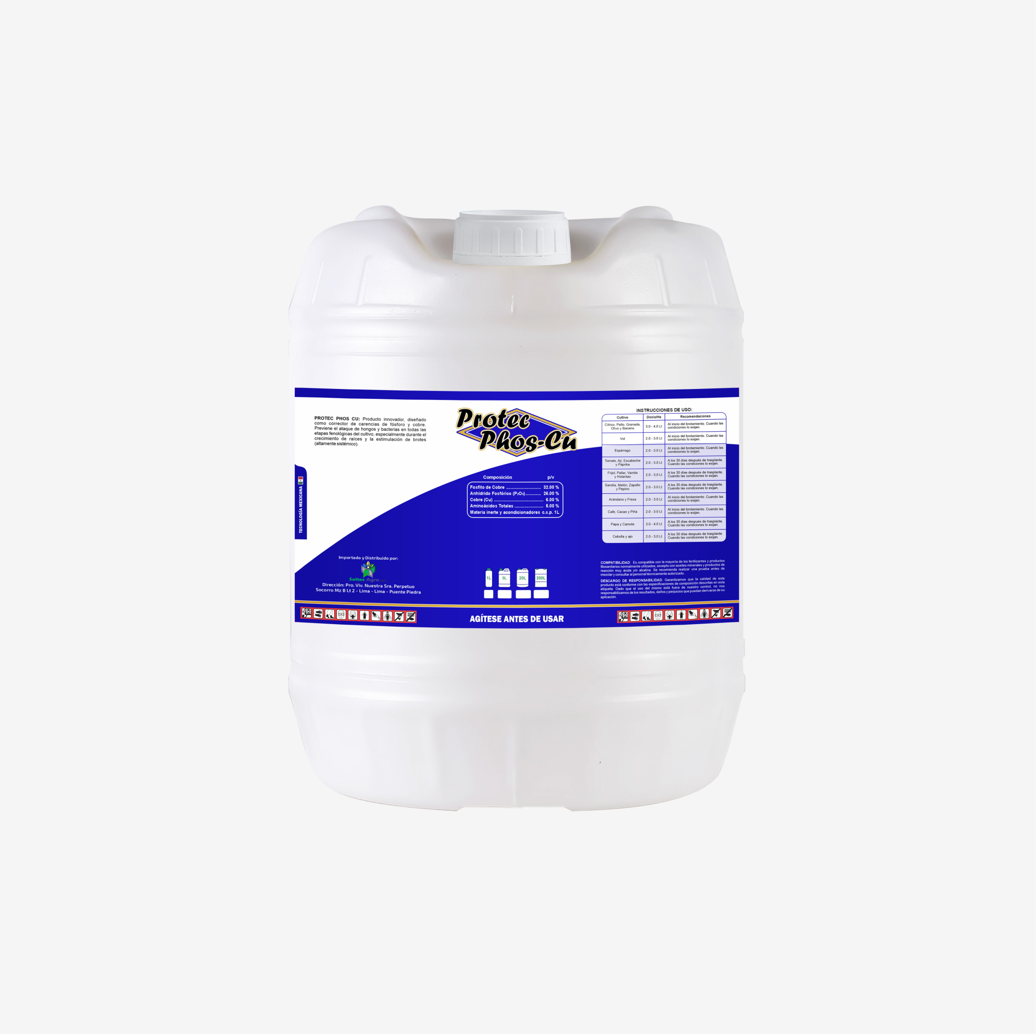 PROTEC PHOS-CU: Producto innovador como corrector de carencias de Fósforo y Cobre. Previene el ataque de hongos y bacterias en todas las etapas fenológicas del cultivo, especialmente en el crecimiento de raíces y estimulación de brotes. (Altamente sistémico).