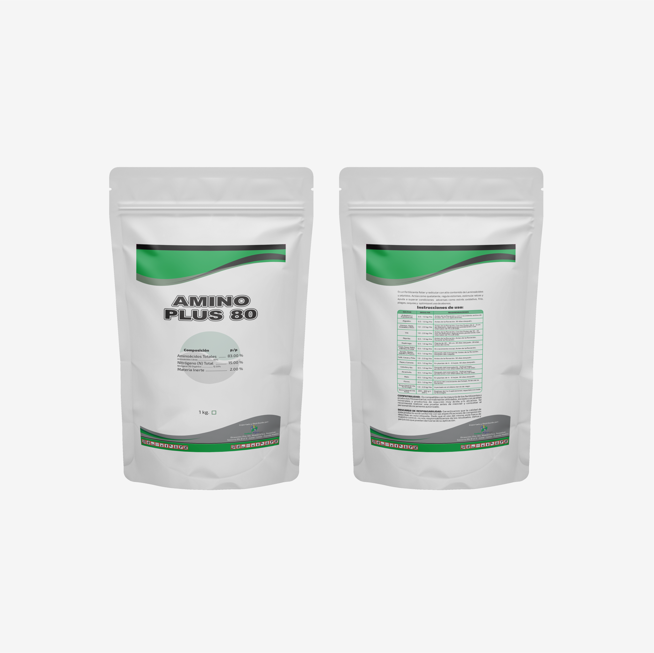 AMINO PLUS 80: Es un fertilizante foliar y radicular con alto contenido de L-aminoácidos y péptidos. Actúa como quelatante, regula estomas, estimula raíces y ayuda a superar condiciones adversas como estrés oxidativo, frio, plagas, sequías y optimiza el uso de abonos.
