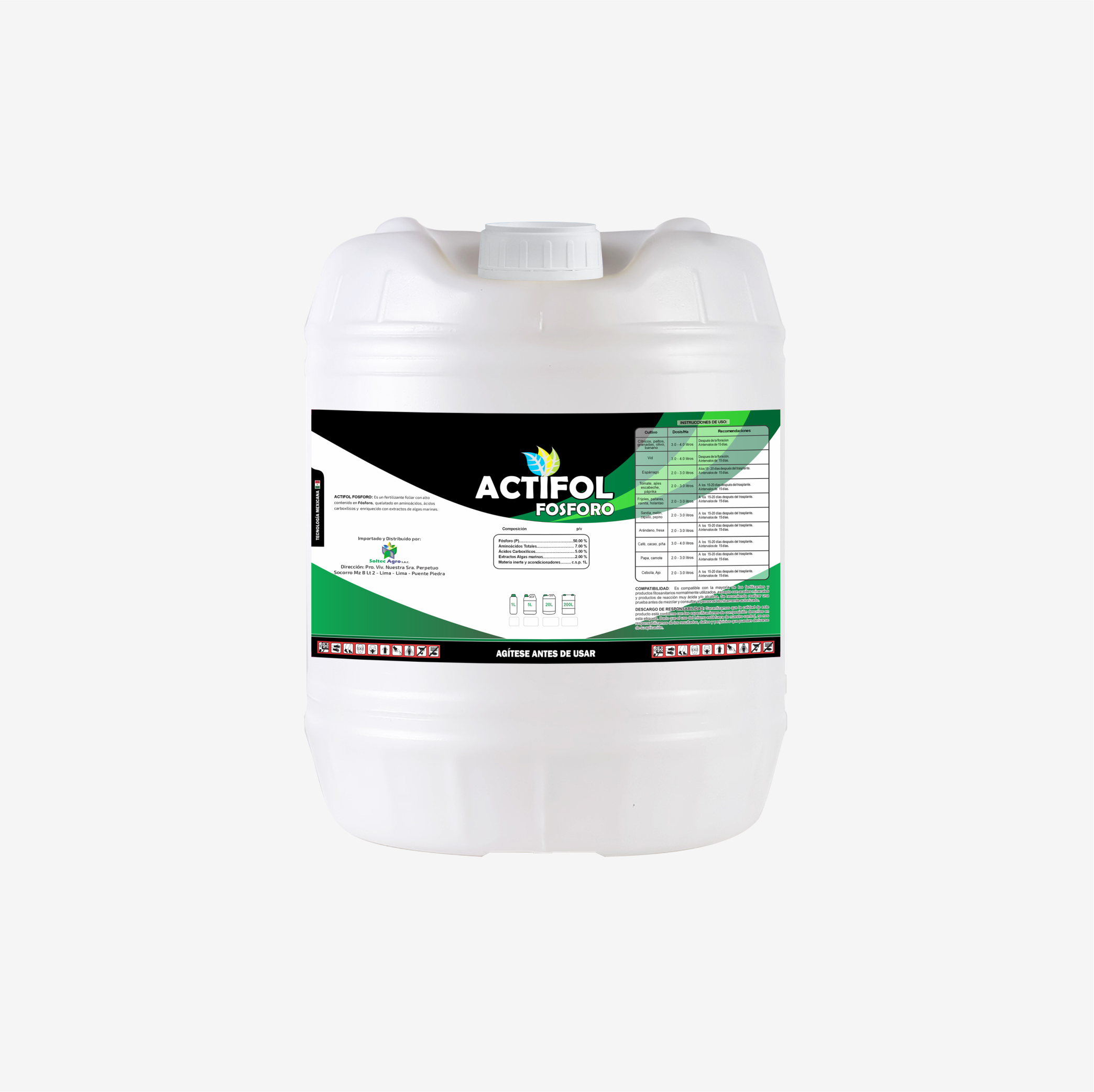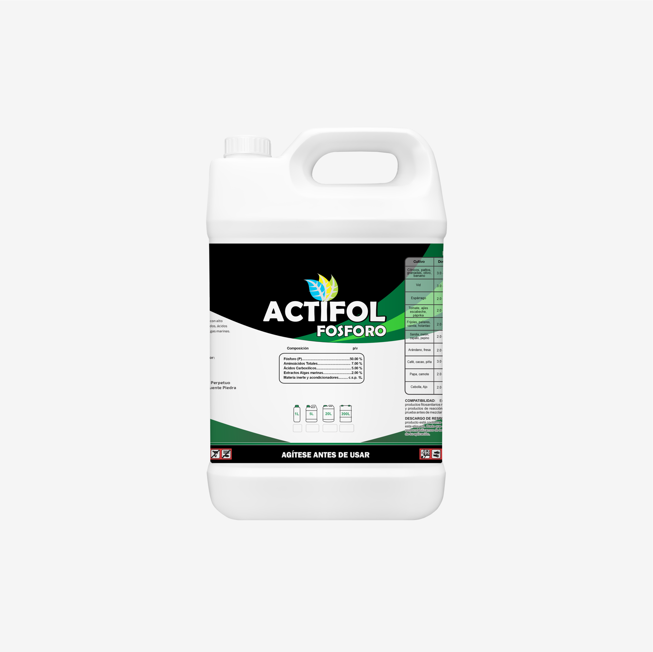ACTIFOL FOSFORO: Es un fertilizante foliar con alto contenido en Fósforo, quelatado en aminoácidos, ácidos carboxílicos y enriquecido con extractos de algas marinas.