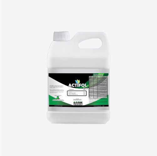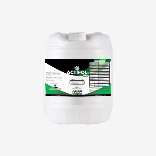 ACTIFOL ZINC: Es un fertilizante foliar con alto contenido de Zinc, quelatado en aminoácidos, ácidos carboxílicos y enriquecido con extractos de algas marinas. Interviene en la formación de órganos reproductores y en la síntesis de carbohidratos y proteínas.