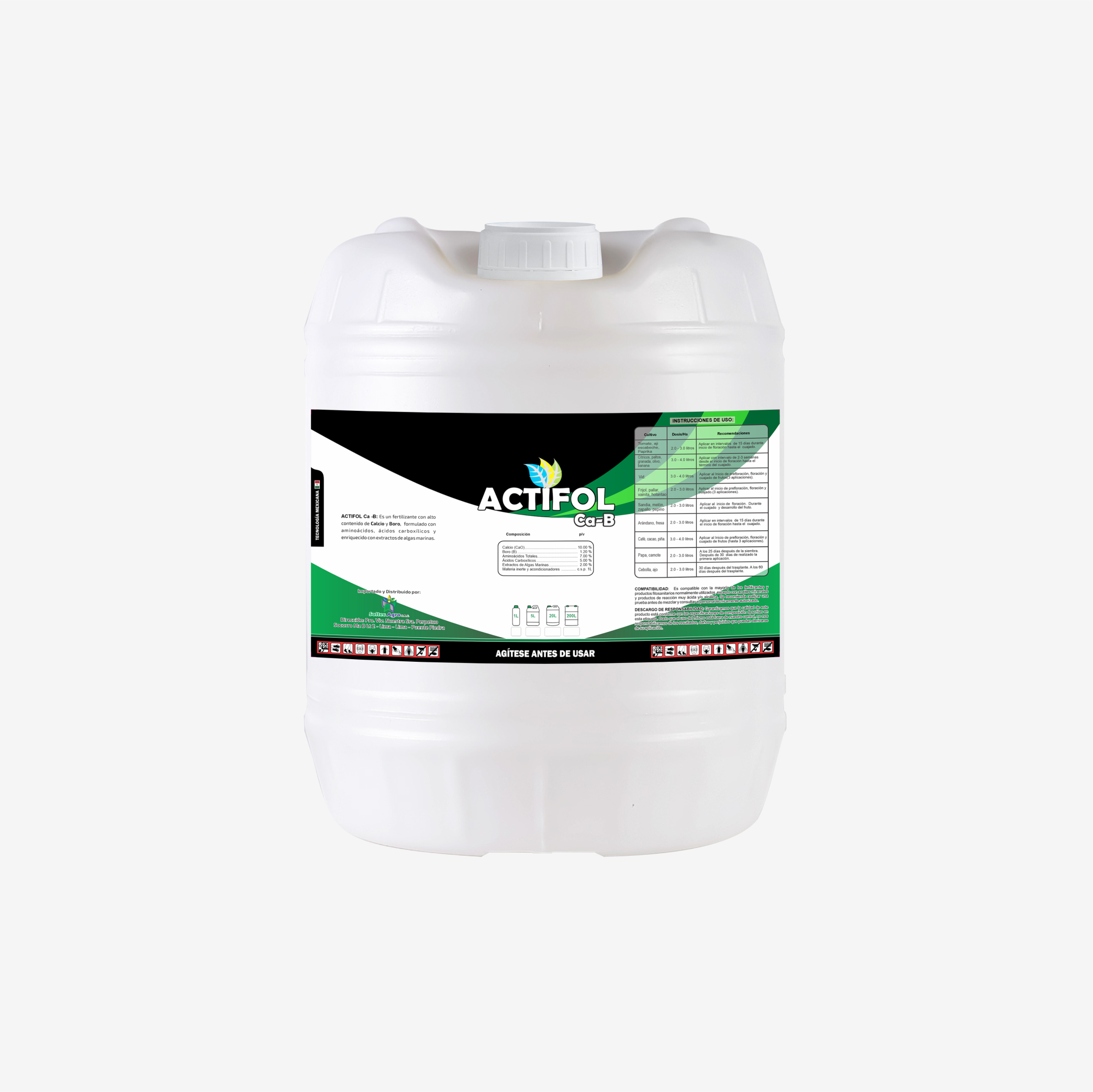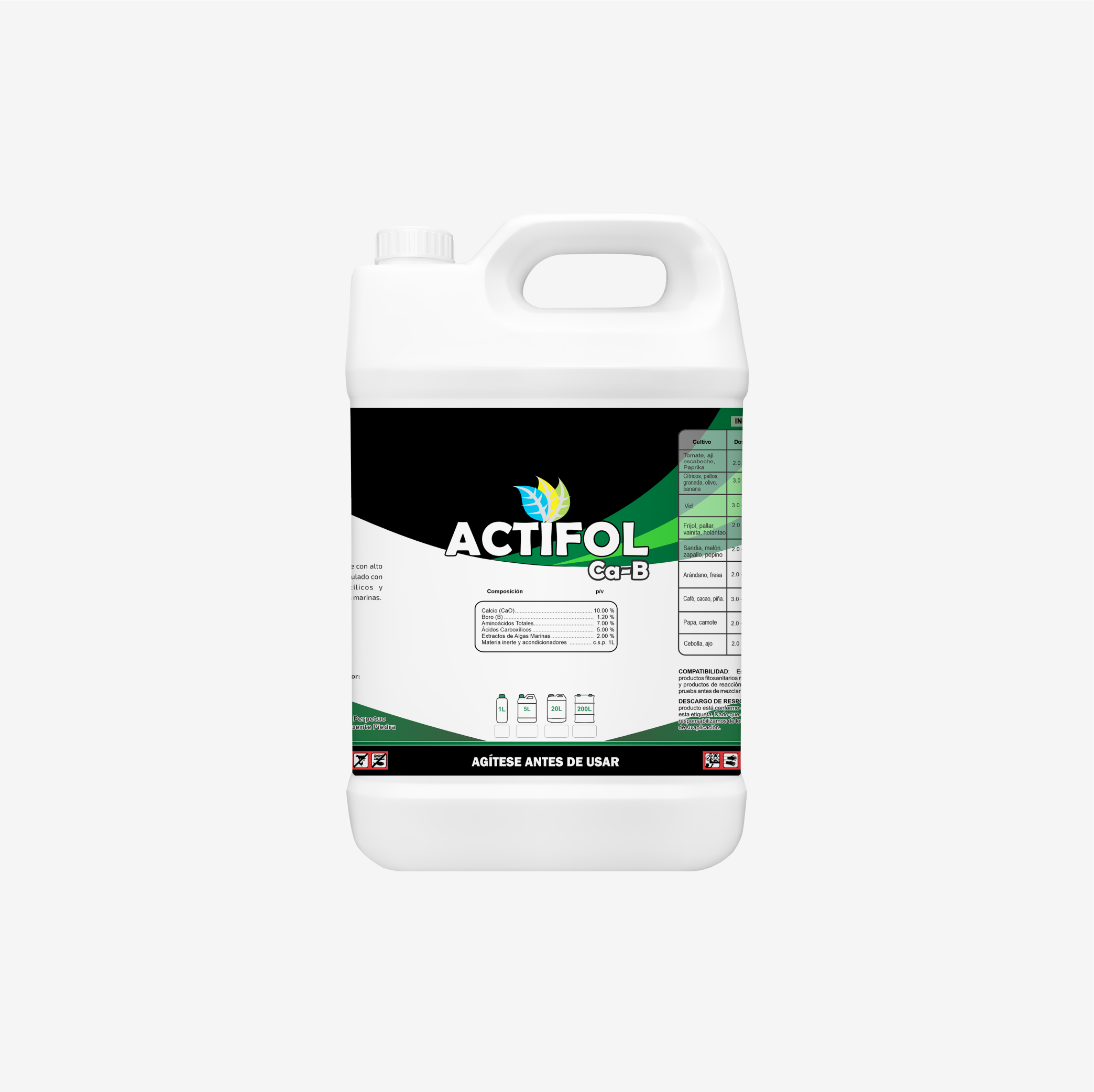 ACTIFOL CA-B: Es un fertilizante con alto contenido de Calcio y Boro acomplejado con aminoácidos, ácidos carboxílicos y enriquecido con extracto de algas marinas.