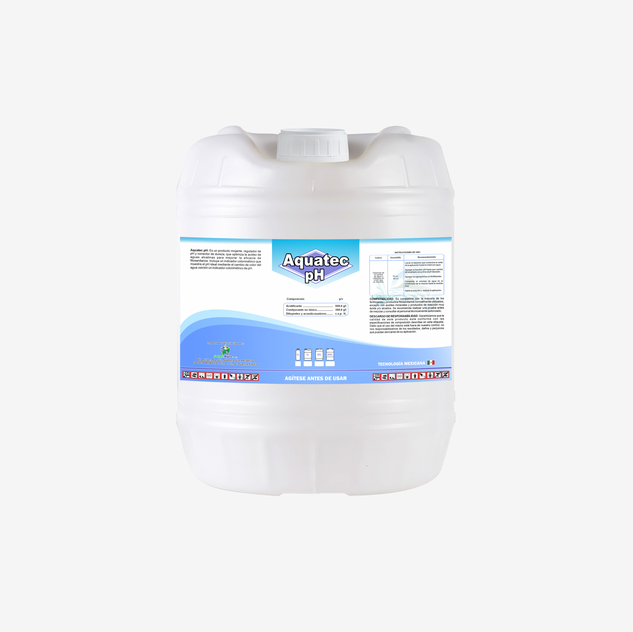 AQUATEC PH: Es un producto mojante, regulador de pH y corrector de dureza, que optimiza la acidez de aguas alcalinas para mejorar la eficacia de fitosanitarios. Incluye un indicador colorimétrico que muestra el pH ideal mediante el cambio de color del agua.