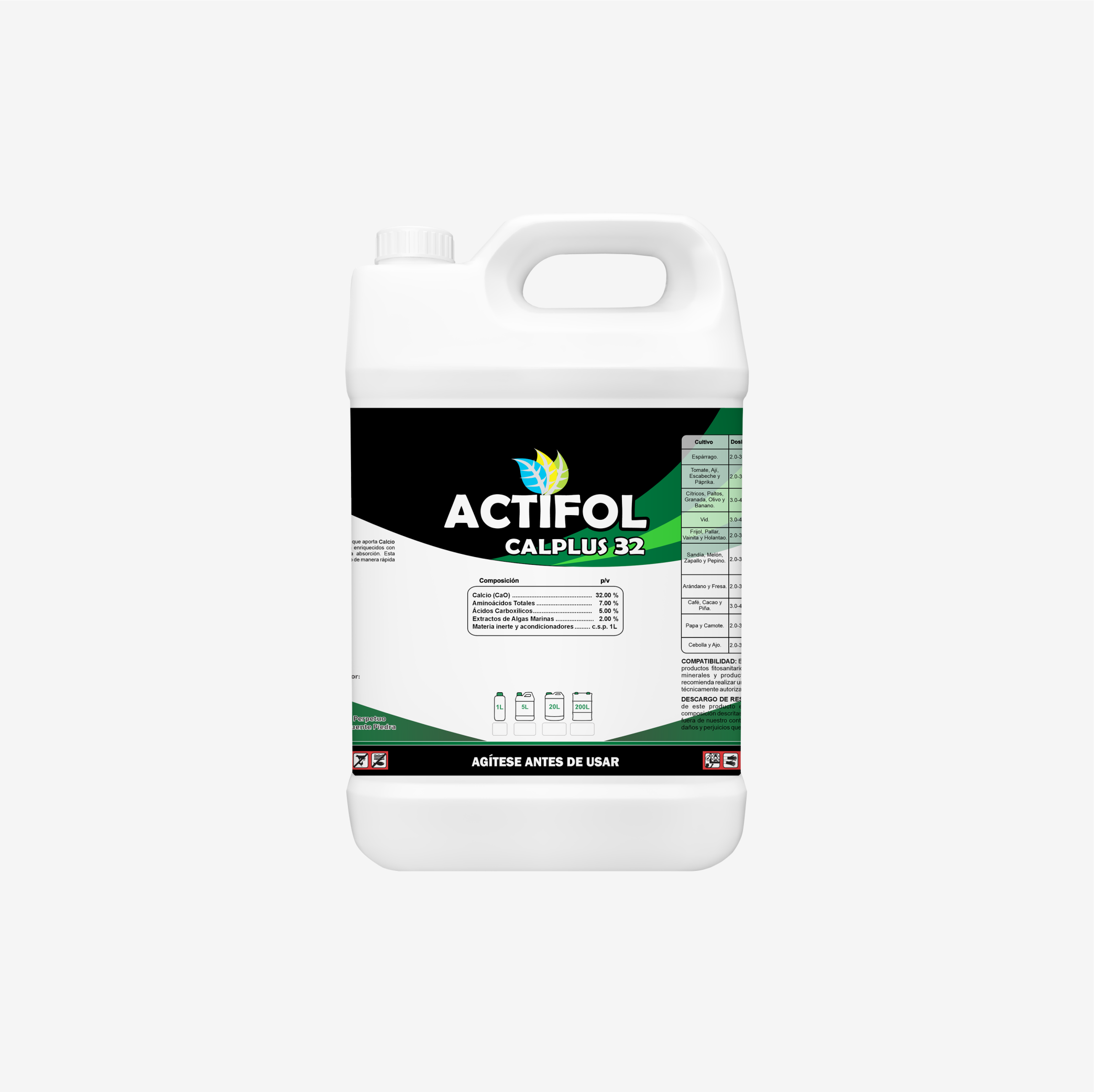 ACTIFOL CalPlus 32: Es un fertilizante foliar líquido que aporta Calcio quelatado en aminoácidos, ácidos carboxílicos y está enriquecido con extractos de algas marinas para lograr una rápida absorción. Está diseñado para prevenir y corregir las carencias de calcio de manera rápida y efectiva.