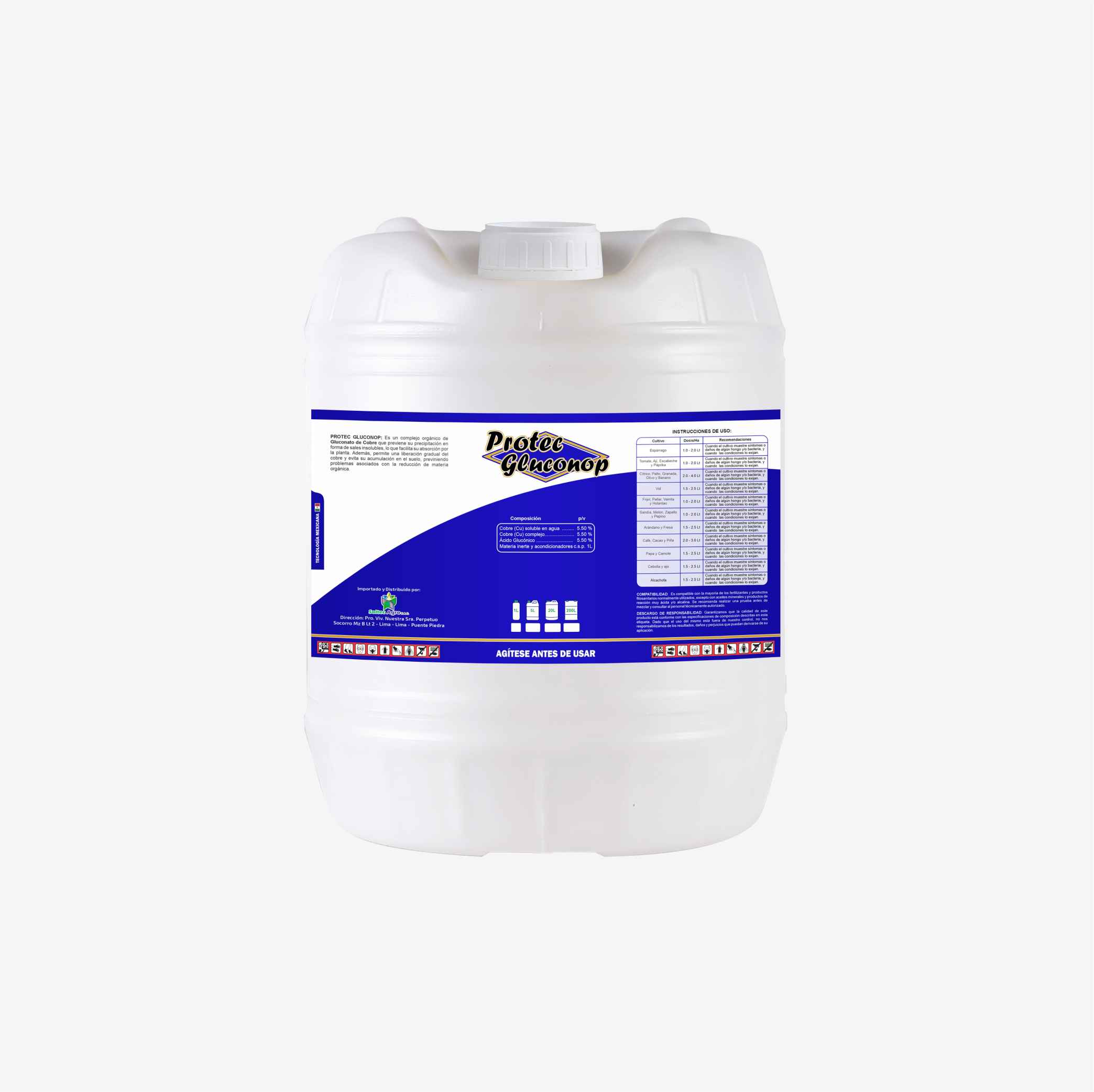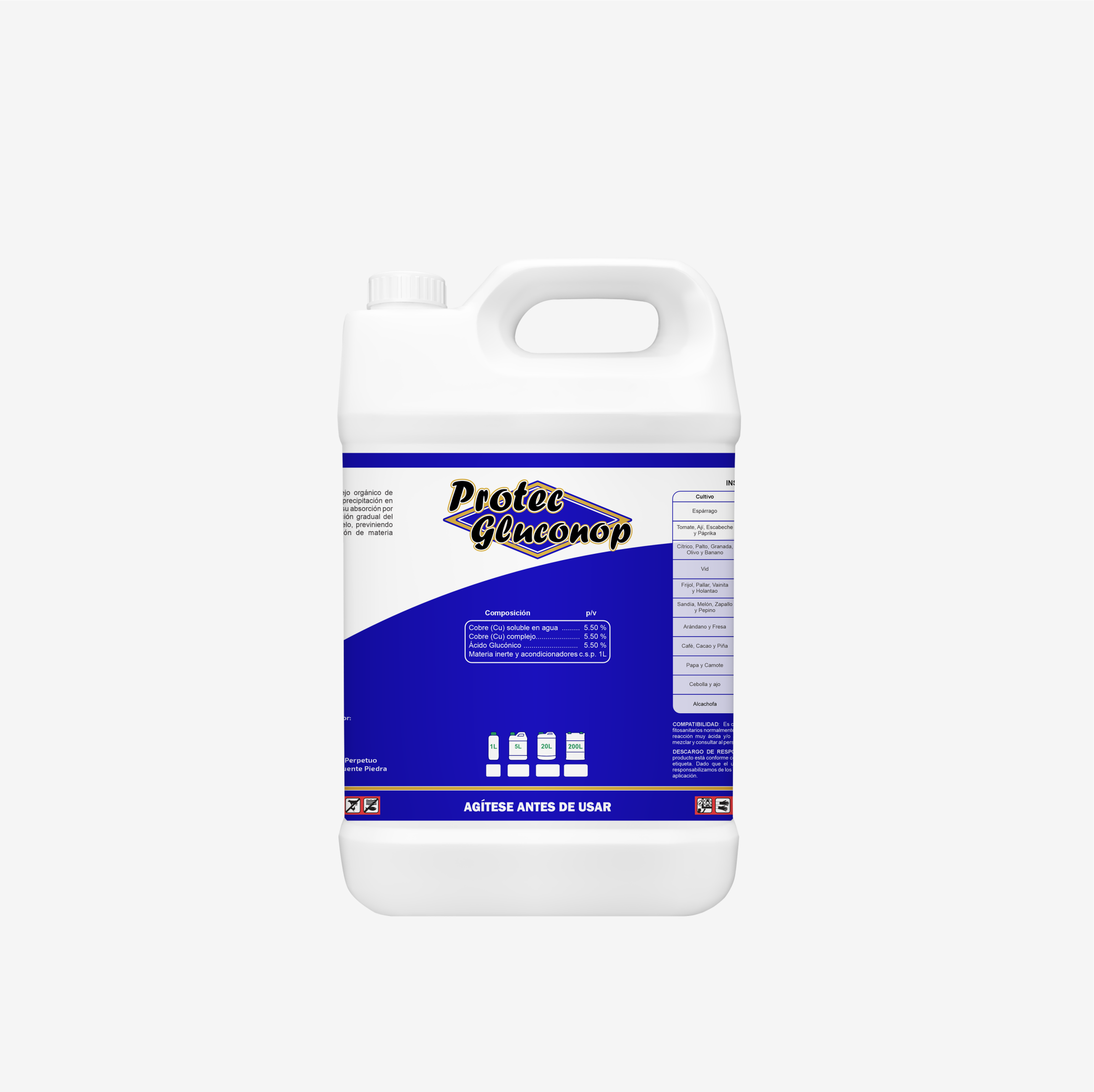 PROTEC GLUCONOP: Es un complejo orgánico de gluconato de cobre, el cual impide que precipite en forma de sal insoluble y facilita su absorción por parte de la planta. Permite una liberación gradual de cobre y evita la acumulación de cobre en el suelo y los problemas de reducción de materia orgánica asociados.