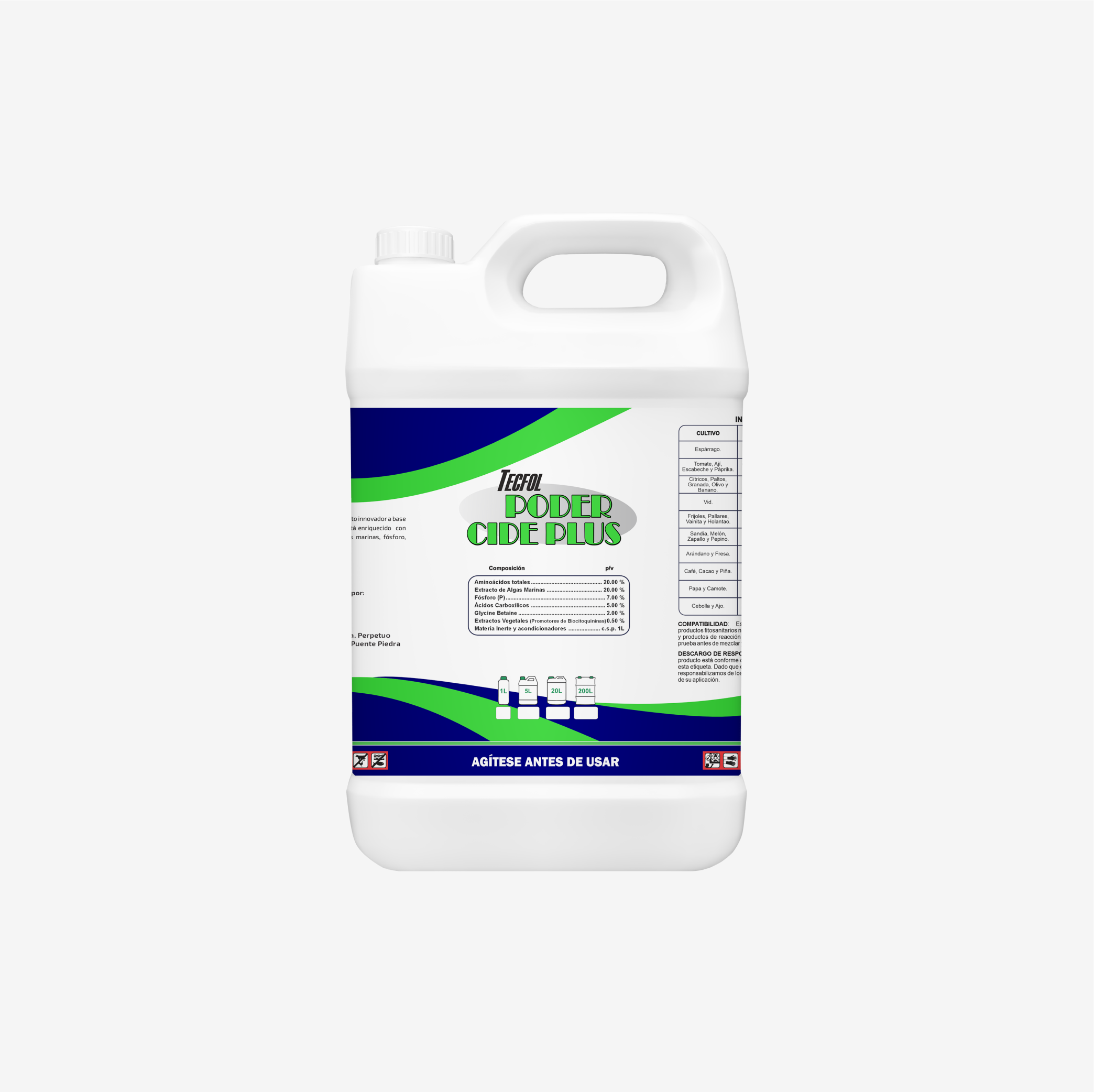 TECFOL PODER CIDE PLUS: Es un producto innovador a base de Extractos vegetales (promotores de BIOCITOQUININAS), está enriquecido con aminoácidos y extracto de algas marinas.