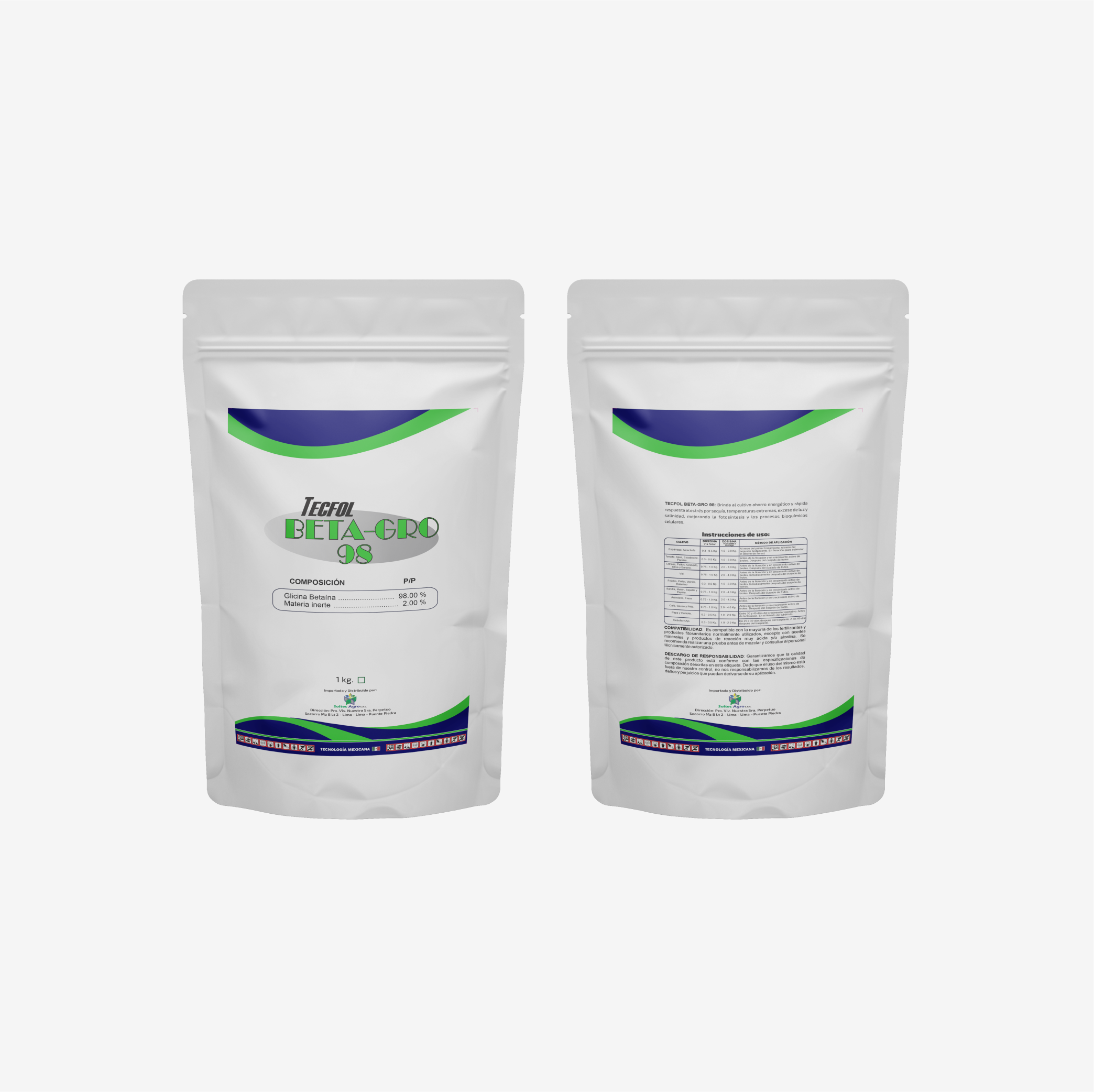 TECFOL BETA-GRO 98: Brinda al cultivo ahorro energético y rápida respuesta al estrés por sequía, temperaturas extremas, exceso de luz y salinidad, mejorando la fotosíntesis y los procesos bioquímicos celulares.