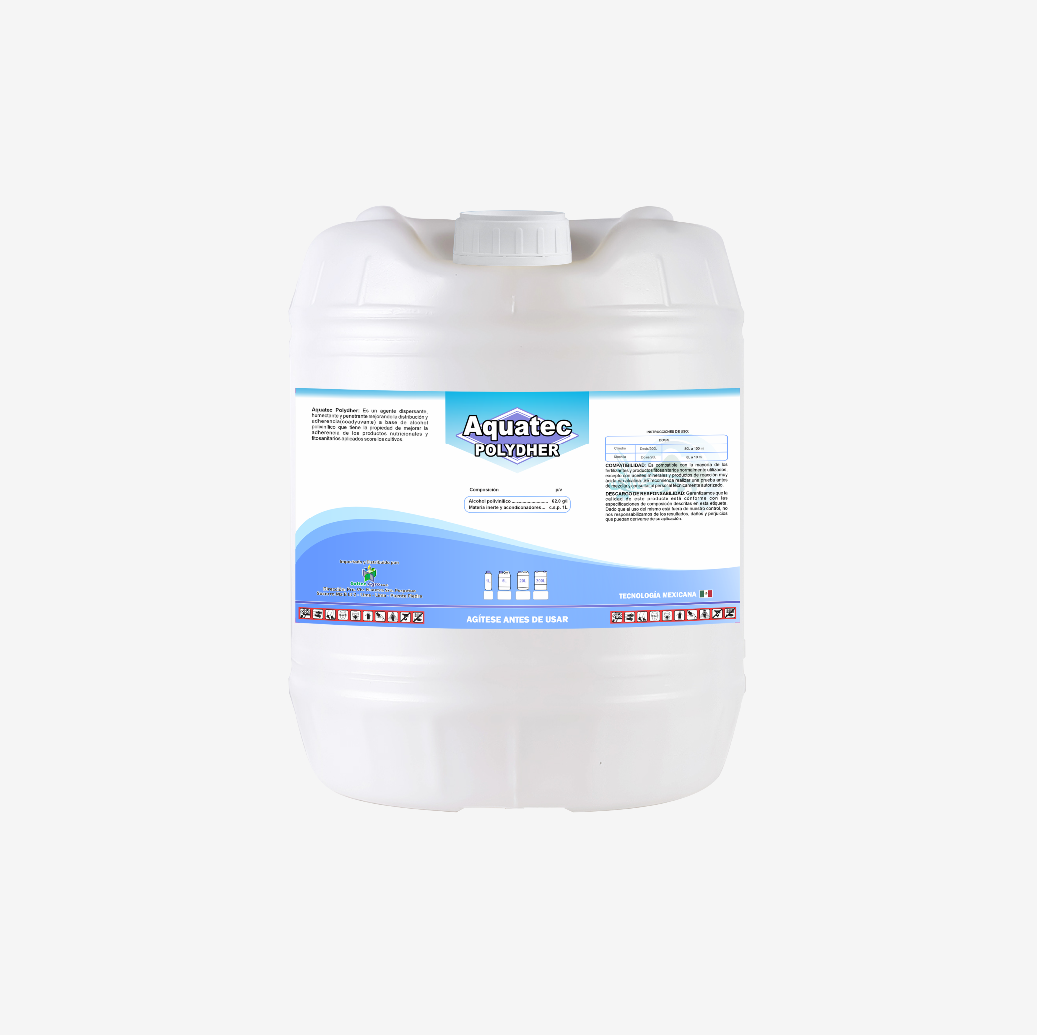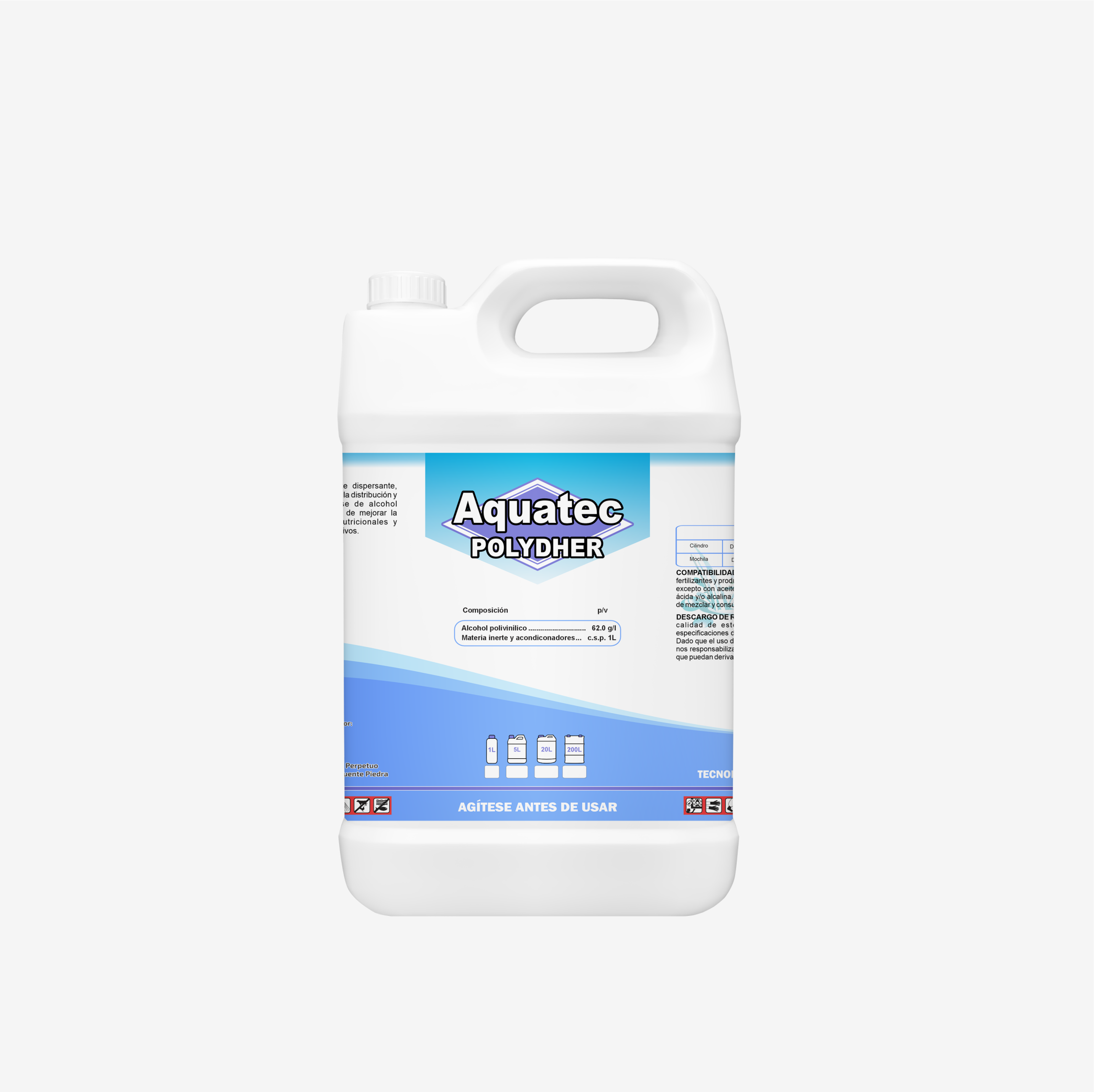 AQUATEC POLYDHER: Es un agente dispersante, humectante y penetrante mejorando la distribución y adherencia(coadyuvante) a base de alcohol polivinílico que tiene la propiedad de mejorar la adherencia de los productos nutricionales y fitosanitarios aplicados sobre los cultivos.