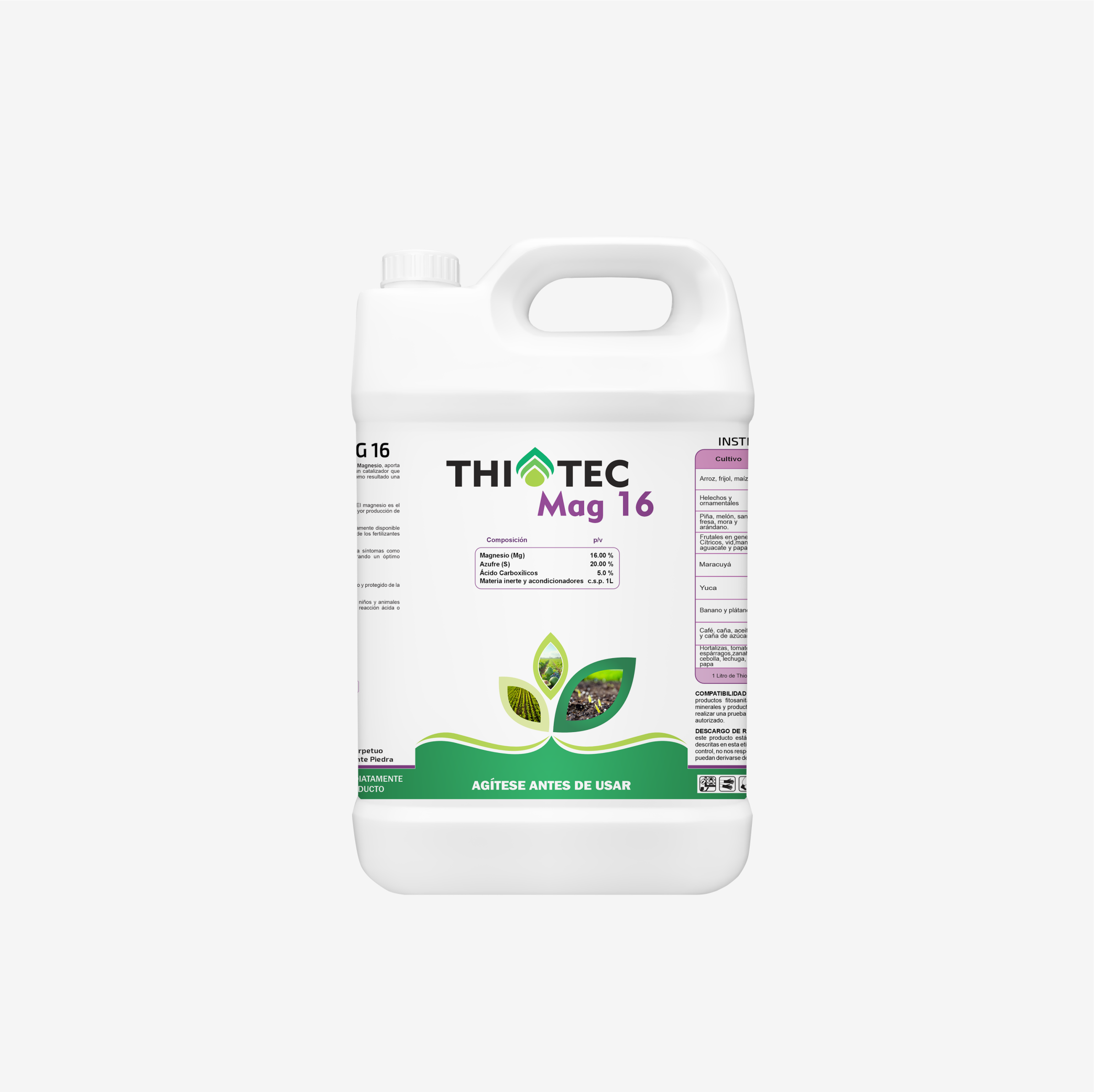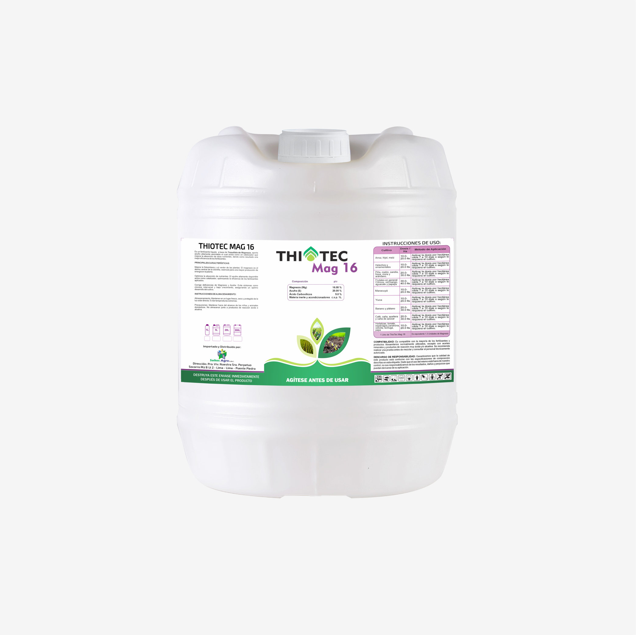 THIOTEC MAG 16: Es un fertilizante líquido a base de Tiosulfato de Magnesio, aporta azufre altamente asimilable el cual actúa como un catalizador que mejora la absorción de otros nutrientes, dando como resultado una mejor eficiencia de los fertilizantes.